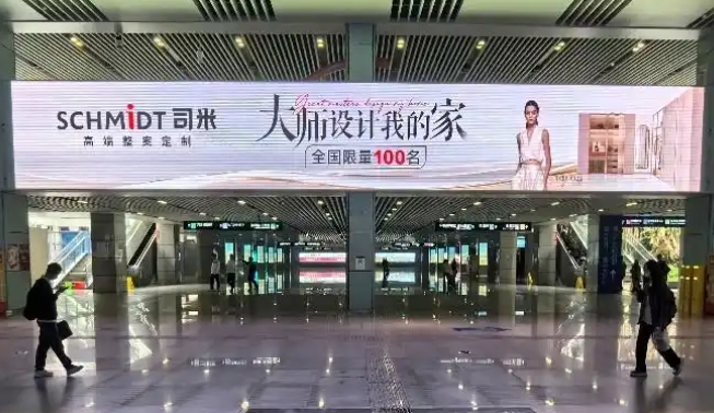 今年51假期,高鐵旅客流量再創(chuàng)歷史新高,SCHMIDT司米品牌傳播借勢而上。基于高鐵廣告?zhèn)鞑ジ吒采w面與權(quán)威性等特征,在交通樞紐高端媒體上展開戰(zhàn)略式滲透布局,進一步加深全國消費者對SCHMIDT司米“高端整案定制”品牌定位的認知與了解。