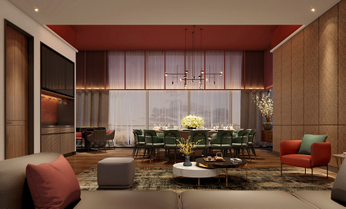 餐廳設(shè)計以故宮紅與城墻灰為主色調(diào),將帝都尊貴氣質(zhì)與現(xiàn)代時尚的完美結(jié)合,締造出大氣磅礴的尊貴感,頗具文化底蘊的裝潢細節(jié)與現(xiàn)代工藝融合,從中透露著大鴨梨對品質(zhì)的追求。