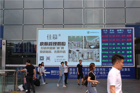 為了更好、更快、更準(zhǔn)確地傳播品牌的核心價值,佳慕利用一線城市特級站點(diǎn)人流量大、覆蓋范圍廣、亮相頻率高等特點(diǎn),以高端特大廣告牌為載體,通過LED站點(diǎn)時刻表特大屏幕投放形式聚焦推廣。