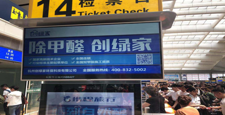 今年8月份,創(chuàng)綠家環(huán)保正式入駐北京南站。在北京南站的眾多電子屏幕上顯示著創(chuàng)綠家環(huán)保的影響力。